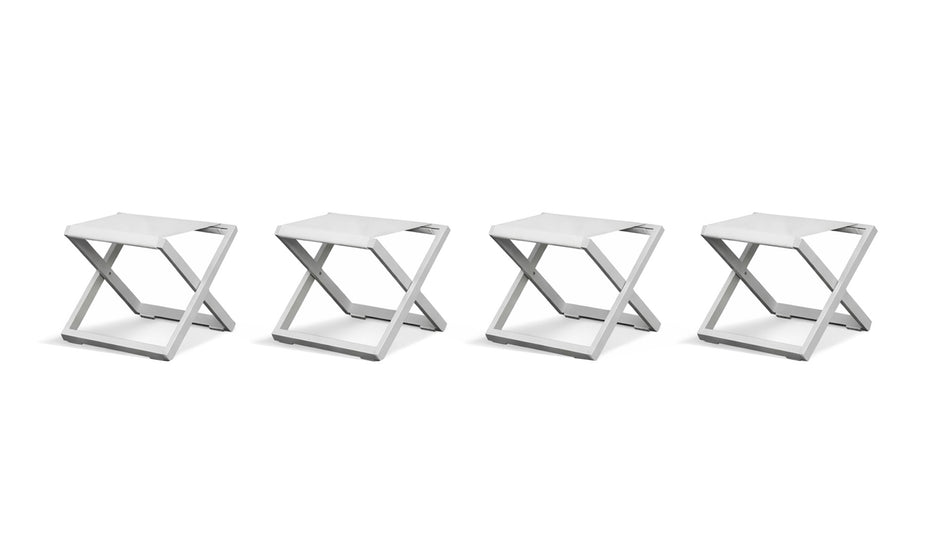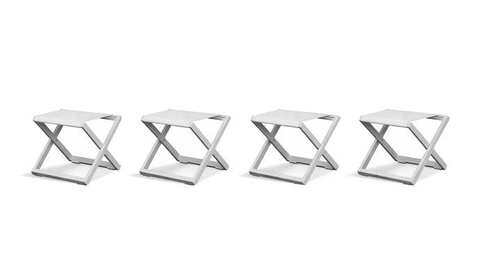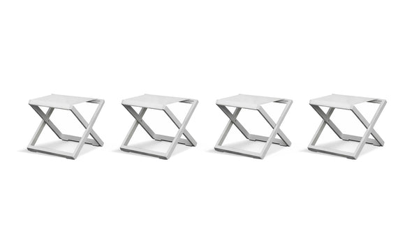 The Pouf, with aluminium structure and textilene seat, is surprising for its simple but complex elements. The shape and the materials allow full usability in outdoor spaces.